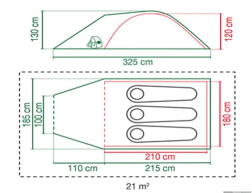 • Groundsheet: PE removable (Living). PE, welded, fully integrated (Bedroom)