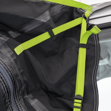 Scope of delivery 1 awning; 1 curtain set; 1 2.2L pump; 2 6m connection straps; 1 peg pack; 1 manual; 1 carry bag