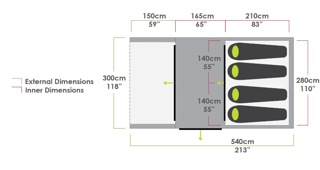 NOTE: Feature image includes an Aerobase 3 connected using an Aerobase Evo Link M, these are not included with the tent but can be bought as an additional option.