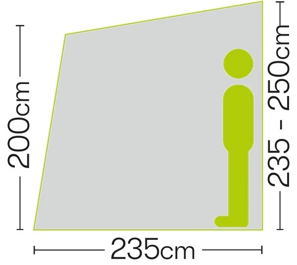 This awning has the minimal quick-fit frame system. This means it uses the minimal amount of poles making it smaller and easier to use. The frame is also adjustable. This is extremely useful when you pitch on uneven ground. Thanks to its adjustable nature it can be extended or shrunk to cater for uneven ground, slopes or obstacles which you can find on a large number of pitches, helping you to pitch correctly at all times.